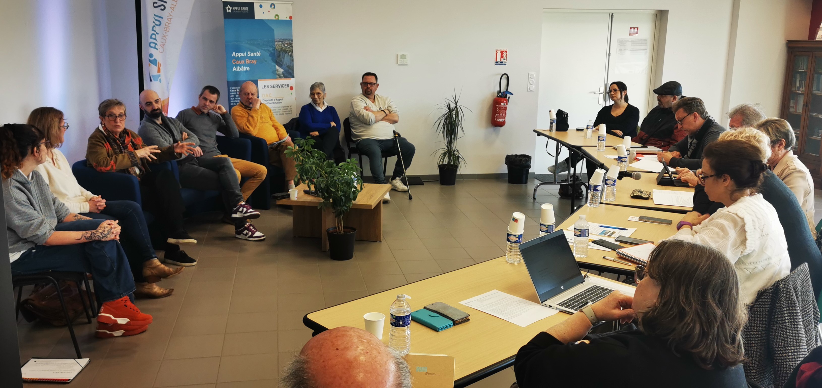 Les intervenants rencontrés : Dr Cécile BONNEFOY, cheffe de projet régional en santé mentale à l’ARS Normandie - Julien COQUAIS, Directeur Général de l'Association Appui Santé Caux Bray Albâtre - Nancy COUVERT, Directrice Générale Association APEI Seine et Mer et vice-présidente de La Commission spécifique santé mentale du territoire de santé de Dieppe - Martine DESMAREST, représentante UNAFAM  - Antony DUMONT, vice-trésorier du Groupe d’entraide mutuelle (GEM) la Solidarité à Dieppe - Dr Jacques FERY, psychiatre retraité du territoire, participant au projet de développement du Centre de santé mobile Caux Bray Albâtre  - Blandine HAQUET LEBAS , Directrice Maison Des Adolescents Caux Maritime- Alison HARAUX, Chargée de développement projet et responsable qualité,  Appui Santé Caux Bray Albâtre-  Samuel LEROY, Directeur des dispositifs de l'association ALVE Dieppe - Dr Simon MARTINEZ, Chef du pole de psychiatrie du Groupe Hospitalier Territorial Dieppe Caux Maritime et Président de La Commission spécifique santé mentale du territoire de santé de Dieppe.