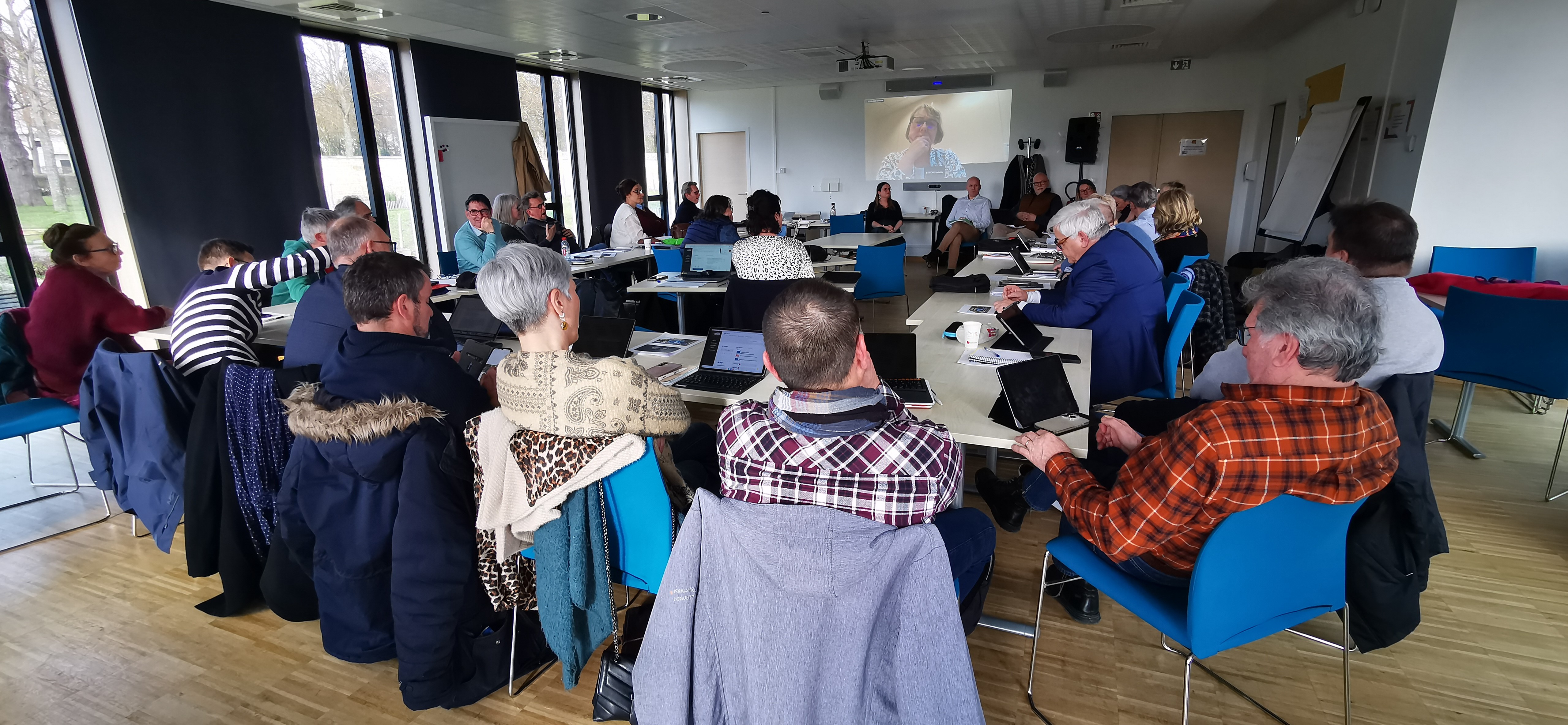 En présence de : Marie-France CANOVILLE, psychiatre et médecin du travail (à la retraite) dans le Nord-Cotentin - Christine ÉCHELARD, directrice générale adjointe Ressources Performance Vie et Evolution de la Collectivité au Conseil régional de Normandie (en visio) et Romane MAURICE, Chargée de projets Région en santé et prévention – Pôle Prévention et Conditions de Travail - Hervé ENOUF, DRH du site Renault Trucks Blainville-sur-Orne (Groupe Volvo) et Emmanuel BARON, Responsable Santé & Sécurité du site (14) - Mélanie SOUFFLET, praticienne en psychothérapie spécialisée dans la souffrance au travail.