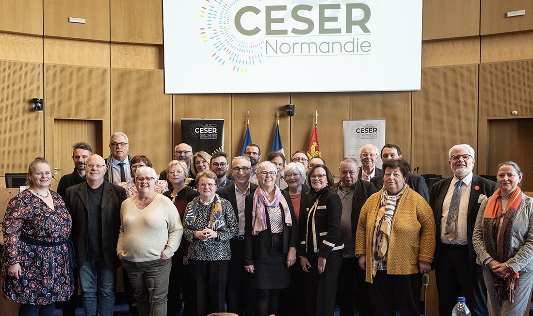 Le bureau du CESER au grand complet ce 11 janvier dans l'hémicycle de la Région à Rouen.